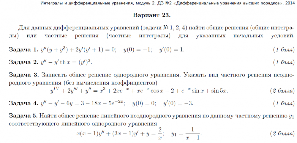 ДЗ 2: Дифференциальные уравнения высших порядков вариант 23