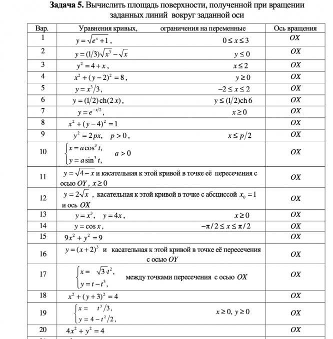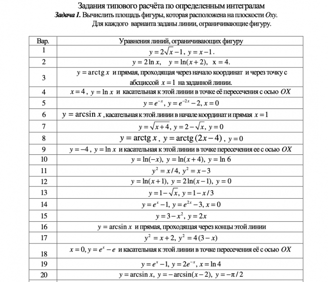 ДЗ 1: Определенный интеграл вариант 20