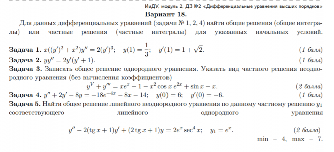ДЗ 2: Дифференциальные уравнения высших порядков вариант 18