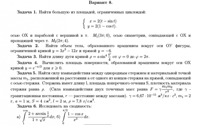 ДЗ 1: Приложение определенного интеграла вариант 8