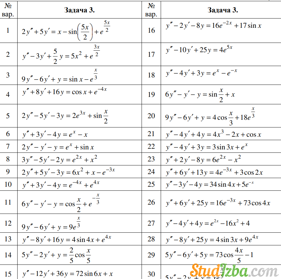 11. Условия типового расчета Задачи 1, 3. Найти общее решение дифференциального уравнения. Задачи 2, 4. Найти частное решение дифференциального уравнения, удовлетворяющее заданным начальным условиям. № вар. Задача 1. № вар. Задача 1.
