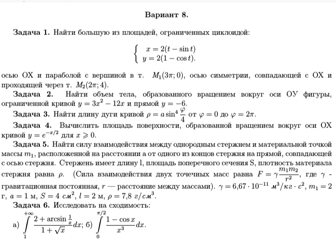 ДЗ 1: Приложение определенного интеграла вариант 8
