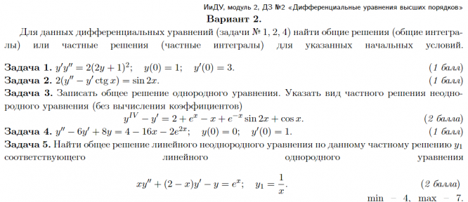 ДЗ 2: Дифференциальные уравнения высших порядков вариант 2
