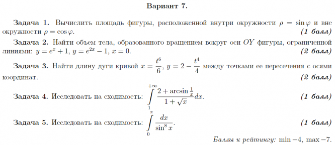 ДЗ 1: Приложение определенного интеграла вариант 7