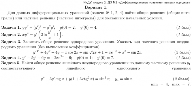 ДЗ 2: Дифференциальные уравнения высших порядков вариант 1