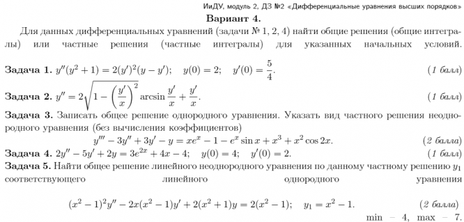 ДЗ 2: Дифференциальные уравнения высших порядков вариант 4