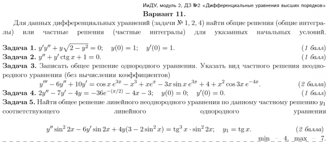 ДЗ 2: Дифференциальные уравнения высших порядков вариант 11