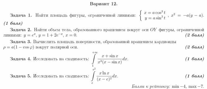 ДЗ 1: Приложение определенного интеграла вариант 12