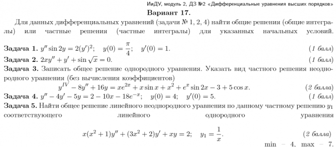 ДЗ 2: Дифференциальные уравнения высших порядков вариант 17