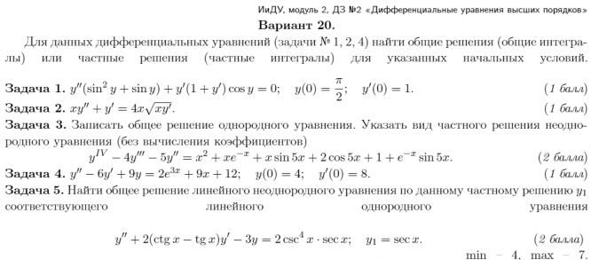 ДЗ 2: Дифференциальные уравнения высших порядков вариант 20