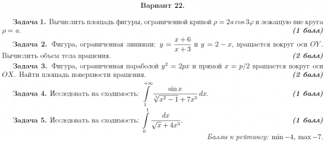 ДЗ 1: Приложение определенного интеграла вариант 22