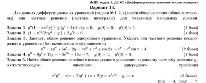 ДЗ 2: Дифференциальные уравнения высших порядков вариант 14