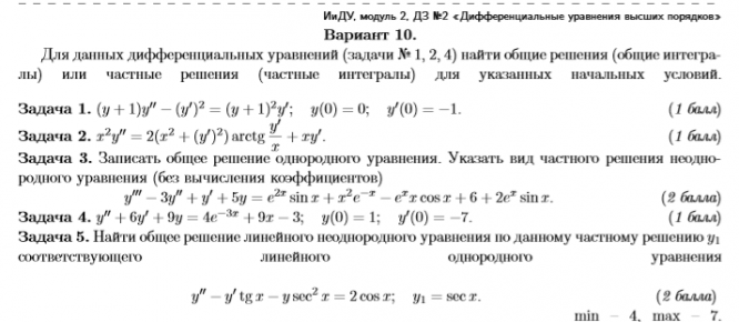 ДЗ 2: Дифференциальные уравнения высших порядков вариант 10