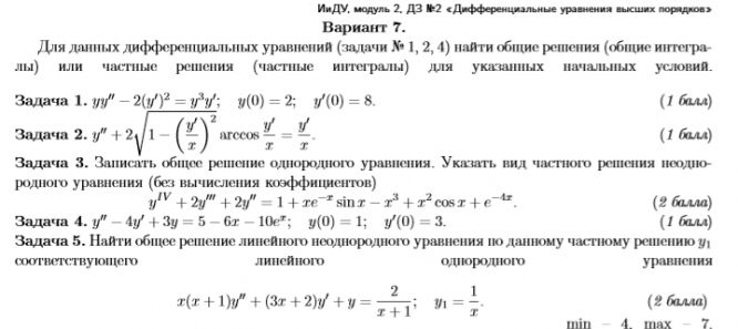 ДЗ 2: Дифференциальные уравнения высших порядков вариант 7