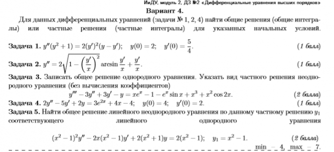 ДЗ 2: Дифференциальные уравнения высших порядков вариант 4
