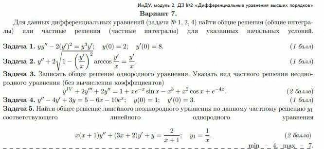 ДЗ 2: Дифференциальные уравнения высших порядков вариант 7