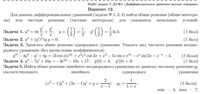 ДЗ 2: Дифференциальные уравнения высших порядков вариант 12