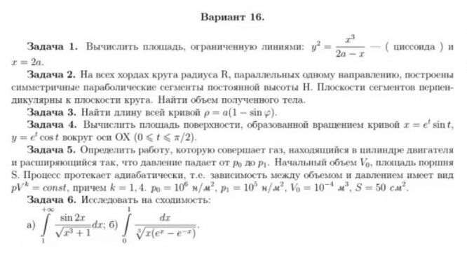 В файле полный ТР-1 по определенным интегралам для 16 варианта (6 задач ). Условие ниже