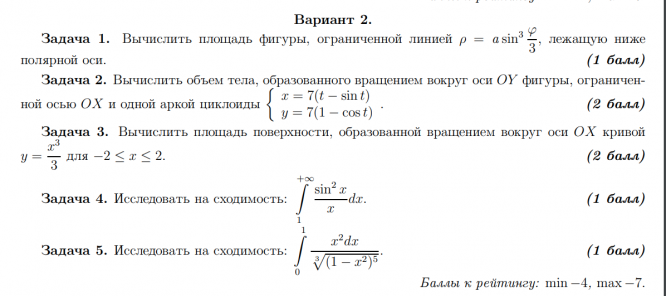 Вариант 2 - ДЗ №1 - Приложение определенного интеграла - ИУ, РЛ, БМТ, ФН12