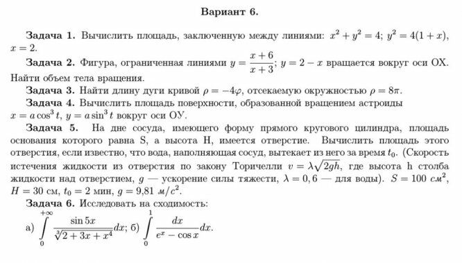 ДЗ 1: Приложение определенного интеграла вариант 6