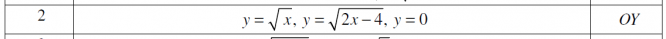 2. Фигура расположена в плоскости Oxy, вращается около координатной оси. Вычислить объем полученного тела вращения.