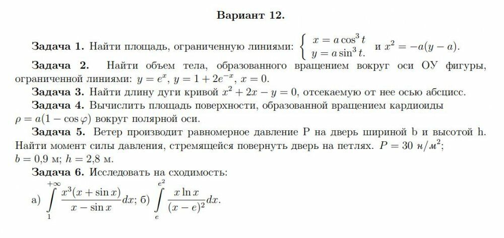 ДЗ 1: Приложение определенного интеграла вариант 12