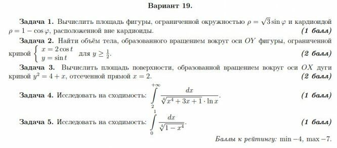 ДЗ 1: Приложение определенного интеграла вариант 19