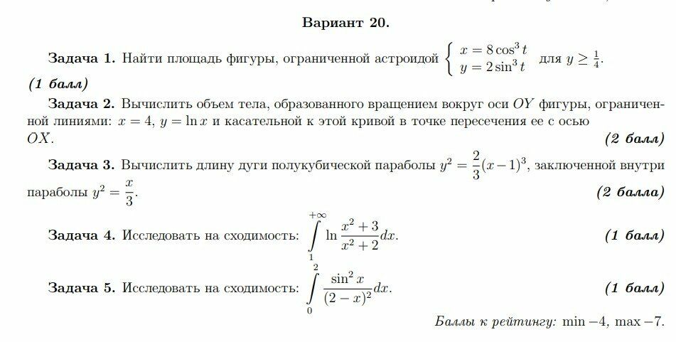 ДЗ 1: Приложение определенного интеграла вариант 20