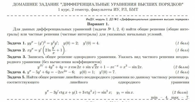 ДЗ 2: Дифференциальные уравнения высших порядков вариант 1