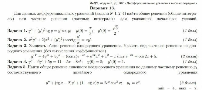 ДЗ 2: Дифференциальные уравнения высших порядков вариант 13