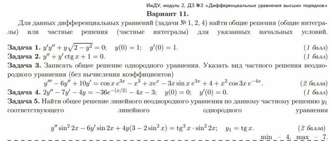ДЗ 2: Дифференциальные уравнения высших порядков вариант 11