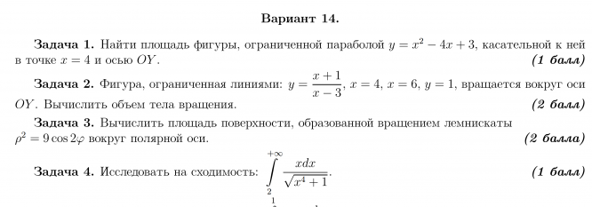 Вариант 14 - ДЗ №1 - Определённый интеграл - ИУ, РЛ, БМТ, ФН12