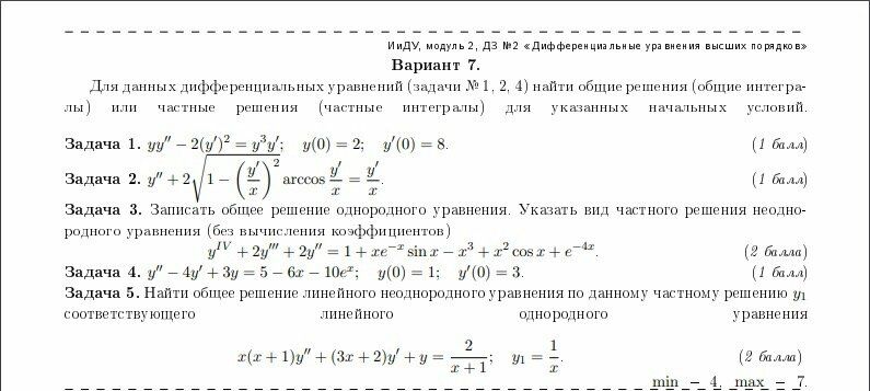 ДЗ 2: Дифференциальные уравнения высших порядков вариант 7
