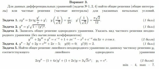 ДЗ 2: Дифференциальные уравнения высших порядков вариант 3