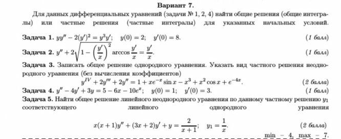 ДЗ 2: Дифференциальные уравнения высших порядков вариант 7