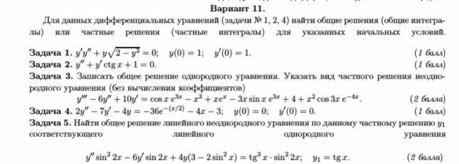 ДЗ 2: Дифференциальные уравнения высших порядков вариант 11
