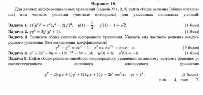 ДЗ 2: Дифференциальные уравнения высших порядков вариант 18