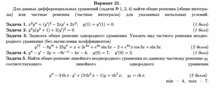 ДЗ 2: Дифференциальные уравнения высших порядков вариант 21