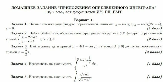Вариант 1 - ДЗ №1 - Определённый интеграл - ИУ, РЛ, БМТ, ФН12