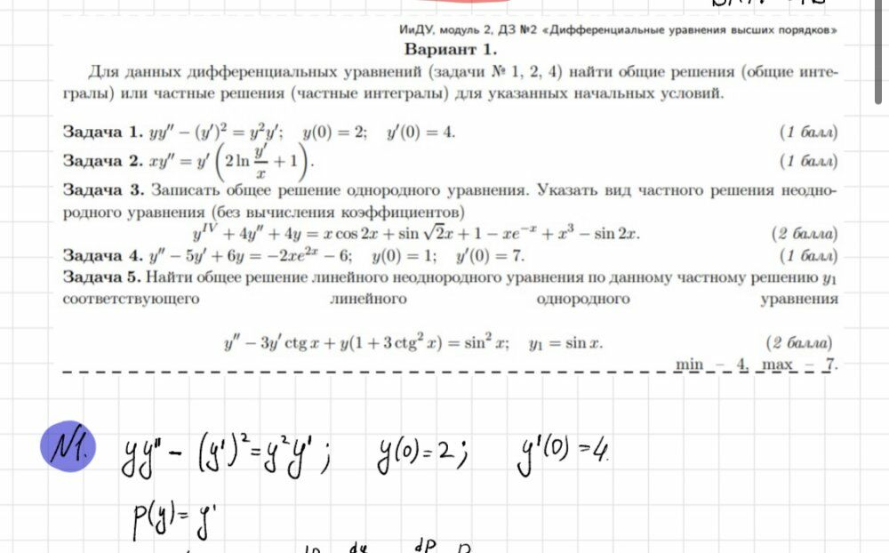 ДЗ 2: Дифференциальные уравнения высших порядков вариант 1