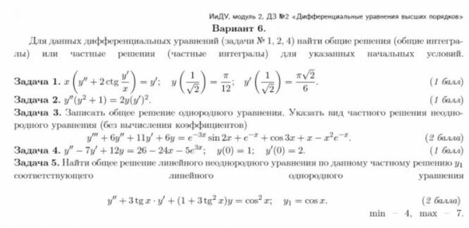 ДЗ 2: Дифференциальные уравнения высших порядков вариант 6