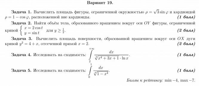 Вариант 19 - ДЗ №1 - Определённый интеграл - ИУ, РЛ, БМТ, ФН12