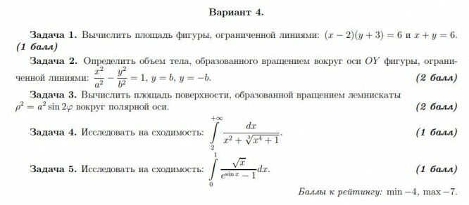 Вариант 4 - ДЗ №1 - Определённый интеграл - ИУ, РЛ, БМТ, ФН12
