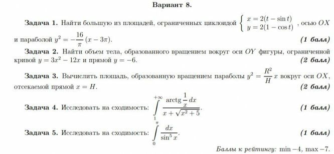 Вариант 8 - ДЗ №1 - Определённый интеграл - ИУ, РЛ, БМТ, ФН12
