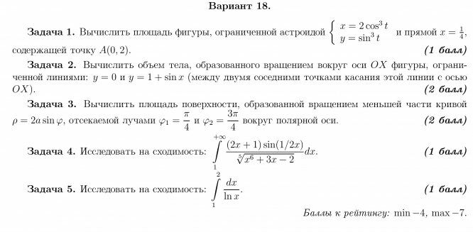ДЗ 1: Определённый интеграл вариант 18