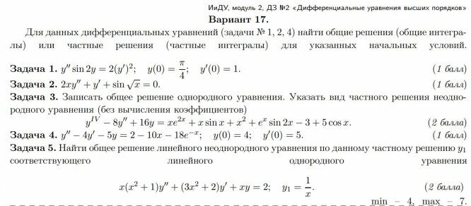 ДЗ 2: Дифференциальные уравнения высших порядков вариант 17