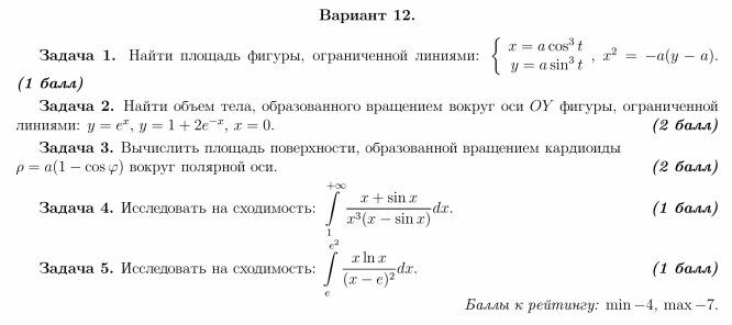 Вариант 12 - ДЗ №1 - Определённый интеграл - ИУ, РЛ, БМТ, ФН12