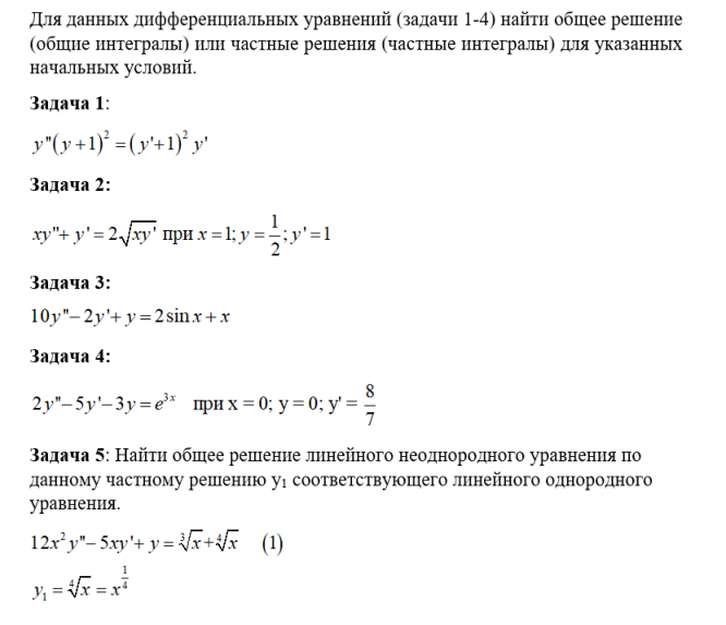 Для данных дифференциальных уравнений (задачи 1-4) найти общее решение (общие интегралы) или частные решения (частные интегралы) для указанных начальных условий.
