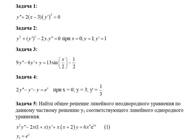Для данных дифференциальных уравнений (задачи 1-4) найти общее решение (общие интегралы) или частные решения (частные интегралы) для указанных начальных условий.