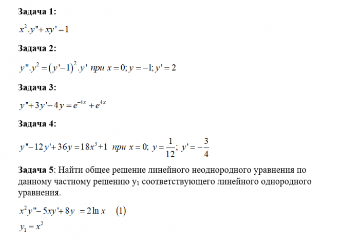 Для данных дифференциальных уравнений (задачи 1-4) найти общее решение (общие интегралы) или частные решения (частные интегралы) для указанных начальных условий.